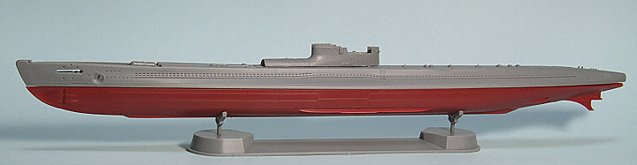 伊58ですが、船底を塗装しました。タミヤのハルレッドで下塗りをしたあと、ハルレッドにフラットレッドを混ぜた塗料を重ねています。