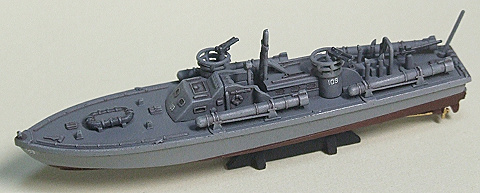 ベース塗装が終わりました。PTボートでは喫水線が船首に向かって高くなっています。サボろうと思いましたが。目立つのでマスキング後に塗装しました。