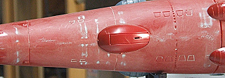 パルスレーザの砲身は差し込んで作りますが、隙間が気になったのでパテで埋めました。