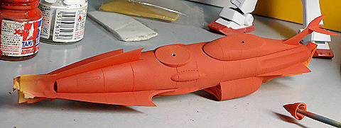 船底の前から1/4ぐらいとのところでパーツが分割されています。接着が必要ですが、かなり大きな隙間あいてしまいました。底で見えない部分なのでそのままでも良いですが、修正したいと思います。