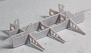 甲板の横のパーツを取り付けました。トラスに穴をあけましたが、下から見ないと全然目立ちません。効果は余り無かった様です・・・。あと、横のパーツの取り付けで、隙間が出来てしまいました。プラ材を埋め込むなどの修正が必要です。