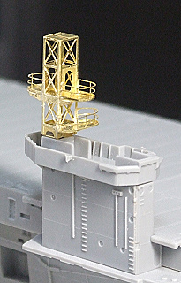 艦橋の組み立てに入りました。レーダーは支柱の部分からオプションのエッジングパーツが用意されています。少しだけ組み立てましたが、これだけで、約1時間の作業・・・。艦橋部分だけで相当時間がかかりそうです。CVE-73_7.jpg
